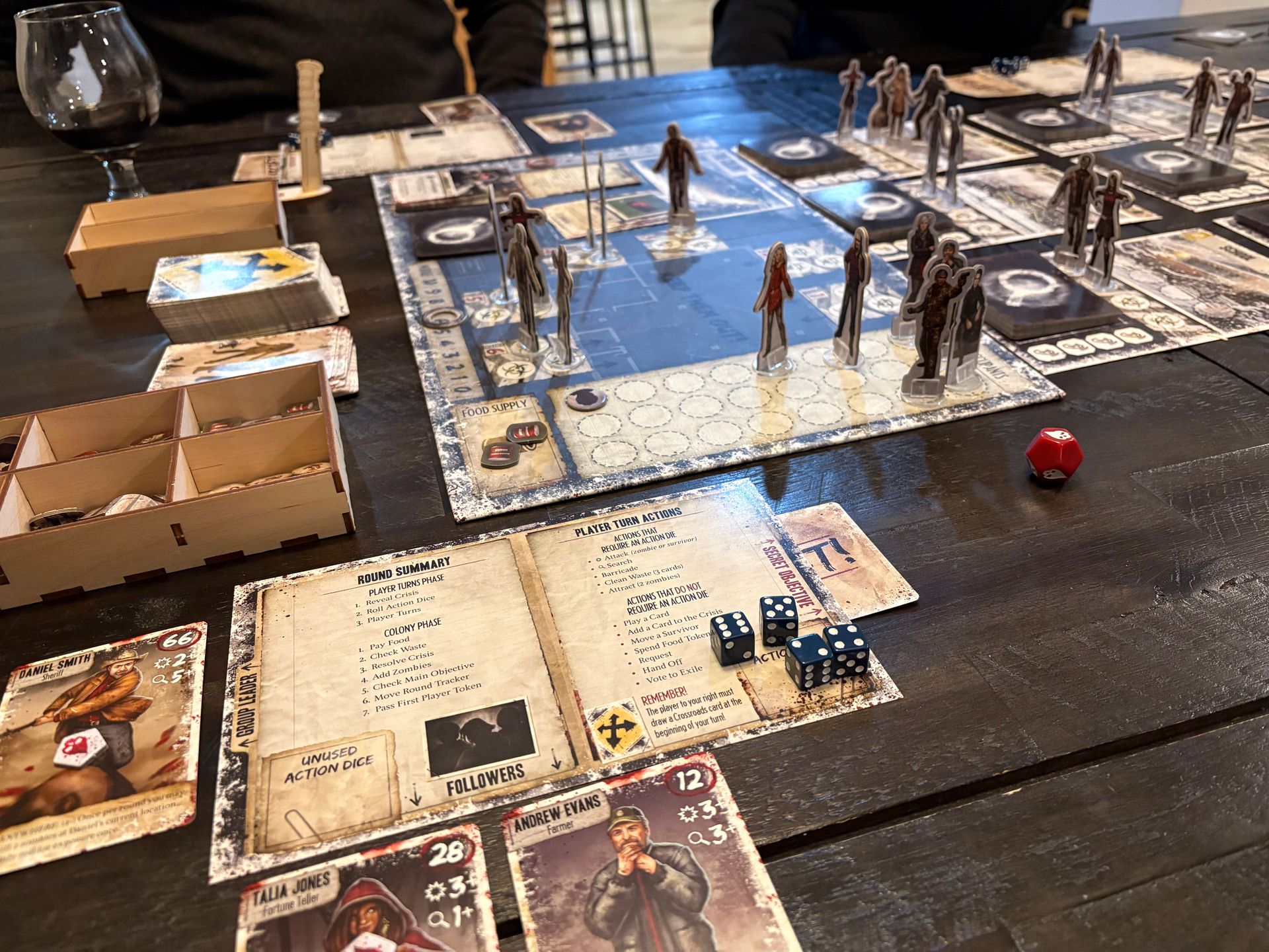 [Daniel] It had been five years to the day since I last played Dead of Winter, and getting in back-to-back games was the perfect reminder of why it stands out as a semi-cooperative thriller. The highs are unforgettable: tense accusations, rolling what might be the most dangerous die in all of board gaming, and the electric moment of drawing a Crossroads card and waiting to see if the player next to you triggers it. Our second game was especially memorable—I was revealed as the betrayer, exposed and exiled, only for my objective to shift and my character to seek redemption, ultimately leading to everyone at the table winning together. Revisiting this one was a great time!